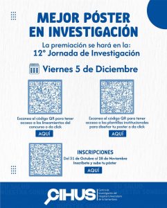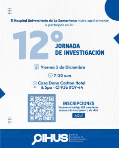 La 12° Jornada de Investigación HUS se llevará a cabo el viernes 5 de diciembre de 2025. Si desea asistir puede diligenciar el formulario de inscripción AQUÍ o escanear el QR de la siguiente invitación: